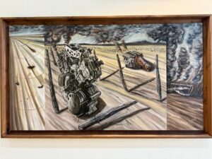El artista ensenadense Daniel Aguilar Meneses, egresado de la Facultad de Artes Plásticas de la UABC, presenta Fenómeno motorizados; la península en estado crítica, una potente propuesta pictórica en torno a las carreras fuera de camino en la península.