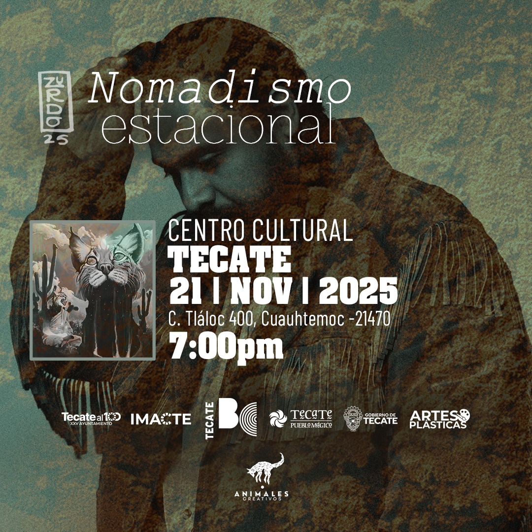 TECATE BC, 12 de noviembre de 2025.- El Instituto Municipal de Arte y Cultura de Tecate (IMACTE) invita a la comunidad a disfrutar de la exposición “Nomadismo Estacional”, una muestra del talento del artista tecatense Zurdo, que será inaugurada el próximo 21 de noviembre a las 7:00 de la tarde en el Centro Cultural Tecate.