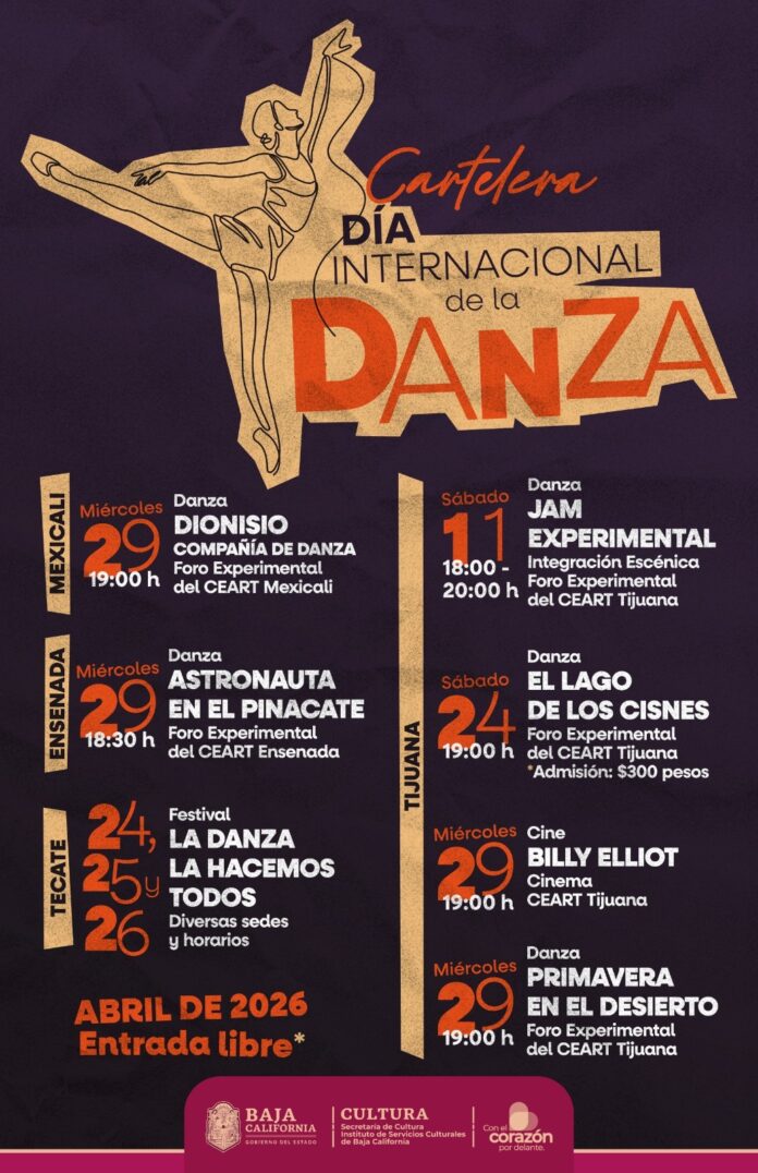 Por su parte, en Tecate se llevará a cabo el festival La danza la hacemos todos, los días 24, 25 y 26 de abril, con diversas sedes y horarios, promoviendo la participación comunitaria y el disfrute colectivo de esta disciplina.