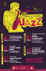 En Tijuana, la programación incluye el concierto de Julian James Band el 22 de abril a las 19:00 horas en el Foro Experimental del CEART, con entrada libre, así como la presentación de Jazz Four Sax el 23 de abril en el Multiforo del ISC, con costo de recuperación de 200 pesos.