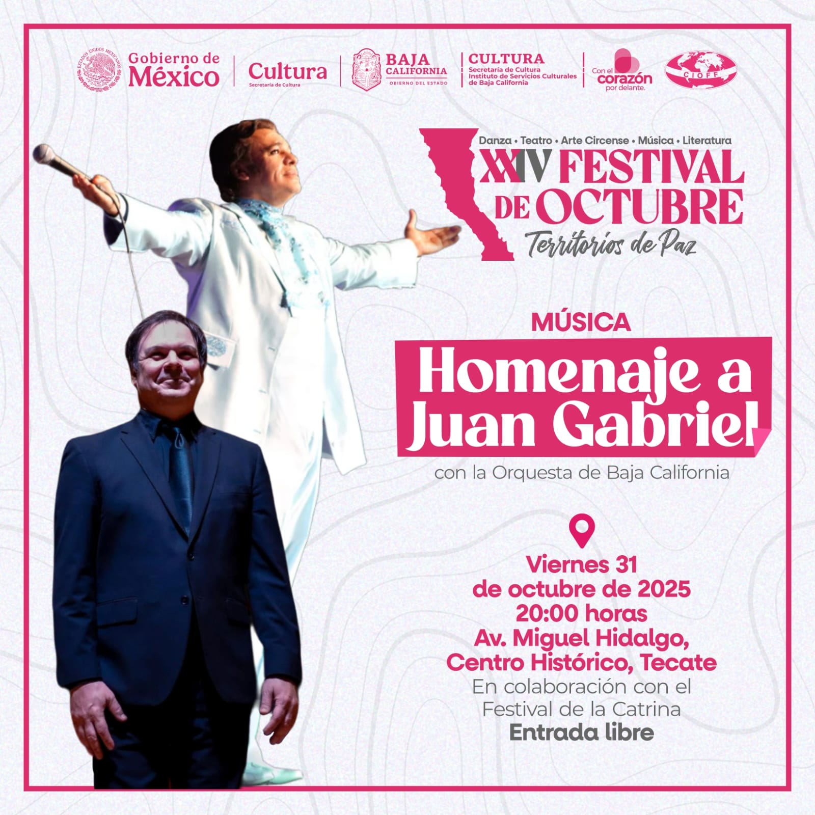 TECATE BC, 30 de octubre de 2025.-El Instituto de Servicios Culturales de Baja California (ISCBC), a través del Sistema Estatal de Música, invita al público a disfrutar de un concierto lleno de emoción, color y memoria: “Hasta que te conocí”, un homenaje sinfónico al legado musical de Juan Gabriel, interpretado por la Orquesta de Baja California (OBC) bajo la dirección artística y musical del Maestro Armando Pesqueira.