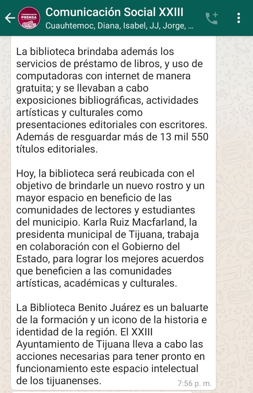 ALCALDESA MINIMIZA LA REMOCIÓN DE LA BIBLIOTECA «BENITO JUÁREZ»