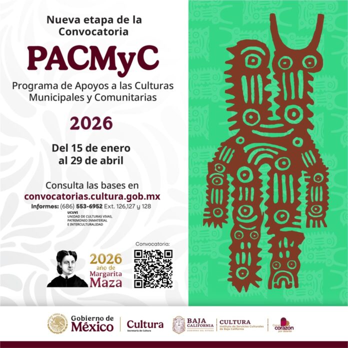 MEXICALI BC, 19 de enero de 2026.- La Secretaría de Cultura del Gobierno de México, en coordinación con las instituciones de cultura estatales, incluido el Instituto de Servicios Culturales de Baja California (ISCBC), convoca a grupos y personas portadoras del patrimonio vivo de comunidades indígenas, afromexicanas y populares a participar en la Convocatoria PACMyC 2026, Nueva etapa.