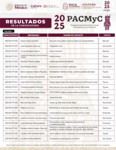 MEXICALI BC, 27 de octubre de 2025. – Con el objetivo de impulsar el desarrollo de proyectos culturales comunitarios que promuevan la creatividad, la autogestión y la investigación local, el Instituto de Servicios Culturales de Baja California (ISCBC) dio a conocer que resultaron beneficiados un total de 44 proyectos, resultado de la convocatoria del Programa de Apoyos a las Culturas Municipales y Comunitarias (PACMyC) 2025.